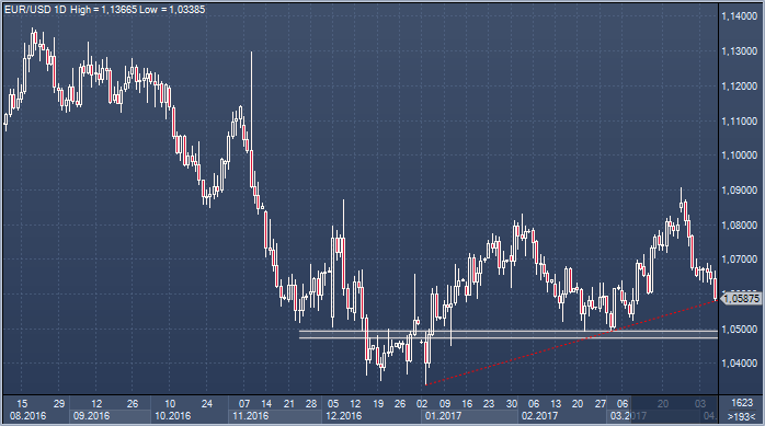 Евро/доллару так и не удалось удержаться выше 1.0610, а прорыв ниже этой отметки обеспечил усиление давления на пару, в результате чего к настоящему времени она неспешно, но довольно однонаправленно снизилась к бидам в районе 1.0580. Последние пока сдерживают напор продавцов, однако, в то время как в преддверии выходных медведи могут не решиться на активные действия, баланс рисков все же смещен в их пользу.