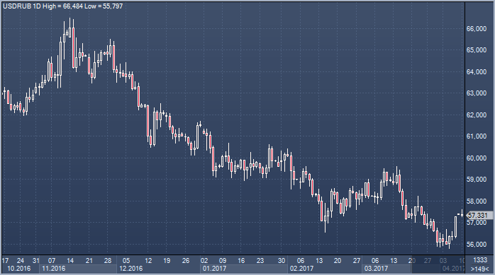 Рубль падает в понедельник: Вашингтон и Лондон заявили, что будет добиваться новых санкций против России. По данным Times, предложение о санкциях подготовлено к саммиту G7 в ответ на химатаку в Сирии, унесшую жизни около 90 человек, в которой Запад обвиняет правительственные войска Асада, поддерживаемого Москвой. Источник: ProFinance.Ru - Новости рынка Форекс