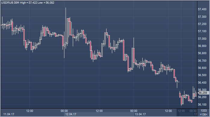 Есть несколько позитивных новостей для рубля. Во-первых, В Китае вышли сильные данные. Так, ВВП страны в 1 квартале 2017 года вырос на 6.9% г/г при прогнозе роста на 6.8% г/г. Во-вторых, сегодня в России начинается налоговый период. 25 апреля уплачивается НДПИ, а 28 апреля - налог на прибыль. Важный для экспортеров налог на добычу полезных ископаемых оценивается в 280-350 миллиардов рублей.
