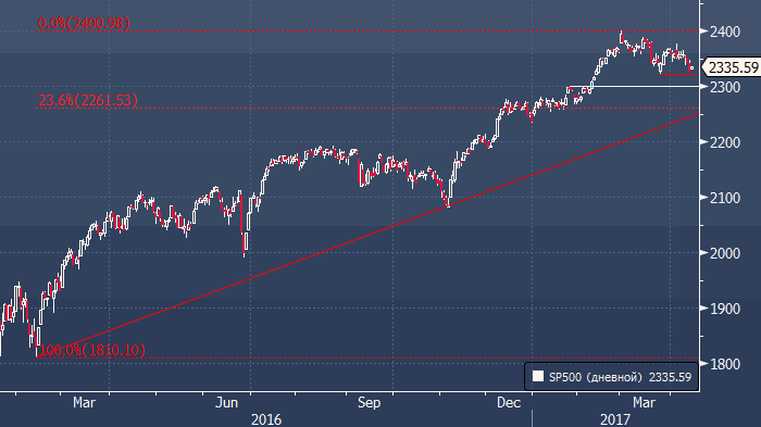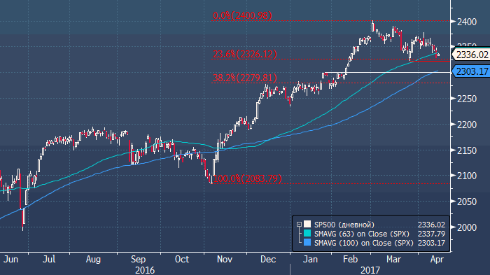 Аналитиков Credit Suisse не особенно радует развитие событий на рынке акций — в банке отмечают, что инвесторы начинают сомневаться, что администрации Дональда Трампа удастся реализовать свои амбициозные планы, предполагающие принятие изменений в налоговое законодательство до осенних каникул Конгресса, а рост геополитической напряженности поддержал смещение фокуса к облигациям. Последние изменения в технической картине, между тем, лишь подкрепляют опасения относительно возможности перехода рынка в фазу коррекции, в частности в Credit Suisse обращают внимание на то, что индекс S&P 500 сформировал закрытие ниже 63-дневной скользящей средней. Внимание теперь смещено к 2326/2322 (23.6% от роста с 07/11/16 и минимум 27/03/17) и прорыв ниже будет сигналом к развитию снижения в направлении 2303/00, после чего под прицелом окажутся уровни в области 2280/2261 (38.2% от роста с 06/11/16 и 23.6% от ралли с февраля 2016). Источник: ProFinance.Ru - Новости рынка Форекс