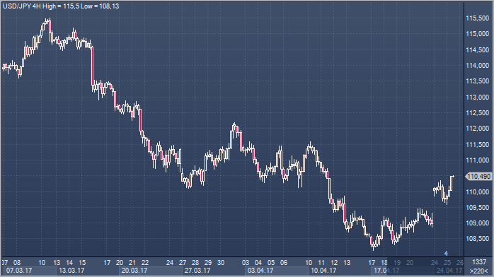 Вместо этого, иена остается в руках аппетита инвесторов к риску и не в последнюю очередь рынков инструментов с фиксированным доходностью США. С перспективой снижения уровня риска после завершения выборов (во Франции 7 мая пройдет второй тур — прим. PFS), мы видим ограниченный потенциал роста USD/JPY с текущих уровней и ожидаем, что пара будет торговаться в диапазоне 108-112 в ближайшей перспективе», - написал эксперт. Источник: ProFinance.Ru - Новости рынка Форекс