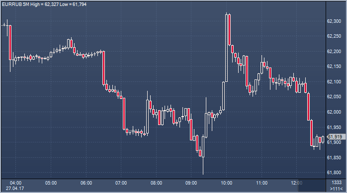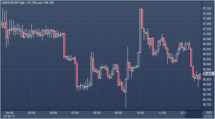 Таким образом, по официальному курсу ЦБ доллар вырос к рублю на 66 копеек, а евро вырос к рублю на 71 копейку по сравнению с официальным курсом четверга. Объем торгов на Московской бирже к 12:48 мск четверга составил 976.0417 млрд рублей или 17 332.4096 млн долларов. Курс рубля немного корректируется сегодня невзирая на продолжающееся падение цен на нефть. Сказывается уплата экспортерами налога на прибыль, приближение завтрашнего заседания Банка России и майских праздников. Рубль ощутил поддержку как и другие сырьевые и валюты развивающихся стран заявлений США о том, что они не выходят из соглашения НАФТА. Это усилило риск-аппетит.