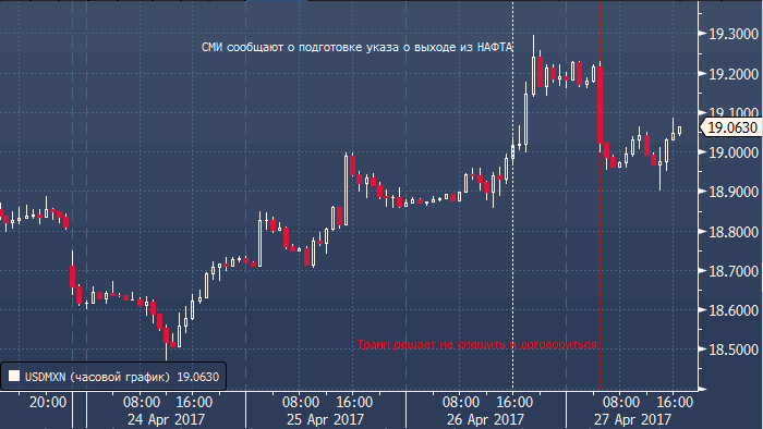 Мексиканский песо на фоне такой смены планов американского президента немного восстановил позиции, а канадский доллар продемонстрировал резкий рост (впрочем, к настоящему времени луни сдал большую часть занятых позиций), однако в целом реакция участников валютного рынка оказалась достаточно сдержанной. Конечно, подобный шаг Трампа мог быть сделан для усиления переговорных позиций, и повышения ставок в торговом споре, разгоревшимся с Канадой. Канадцы заявили, что готовы сесть за стол переговоров в любое время; мексиканцы, между тем, планировали начать переговоры по НАФТА в августе, но в свете последних событий могут решить действовать побыстрее. Вместе с тем, неопределенность сохраняется, поскольку инвесторы слабо представляют каким образом будет модернизировано соглашение, зато они помнят о готовности Трампа радикально менять свою позицию и о его обещании выйти из НАФТА в случае, если договориться об изменении условий соглашения не удастся.