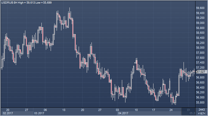 Из заявлений, сделанных по итогам встречи Путина и Меркель, участники рынка поняли, что позитивных изменений во взаимоотношениях не произошло, а информация о телефонном разговоре Путина и Трампа также не содержала значимых для инвесторов деталей, не оправдав надежд быков по рублю. Между тем, обстановка на рынке нефти (брент рискует пробить поддержку вблизи $50.00/$49.70 и отправиться в направлении нижней границы канала с апреля 2016 в районе $48.38) продолжила ухудшаться, и в условиях, когда инвесторы проявляют больше заинтересованности в фиксации прибыли по длинным позициям в рубле, российская валюта завершила вторник снижением.