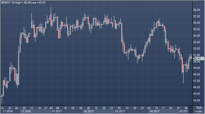 Динамика нефти несколько улучшилась в последнее время, однако движение пока больше напоминают коррекцию, движимую фиксацией прибыли по длинным позициям: рынок позитивно воспринял последний отчет по запасам нефти и нефтепродуктов, но событие было разовым, уверенности в усточйивости роста спроса на бензин нет, и настрой остается настороженным. Еще один приятный сюрприз от DOE на следующей неделе может поддержать дальнейшее улучшение тона торгов, но внимание теперь смещается к встрече ОПЕК, которая пройдет 24 мая, и в преддверии этого события быки, вероятно, воздержаться от активных действий. Представители стран-производителей в последние дни поддерживали ощущение нацеленности на продление соглашения, при этом Саудовская Аравия и Россия смогли привнести интригу, заявив о возможности продления сделки на более длительный срок, нежели полгода, которые ожидались ранее.