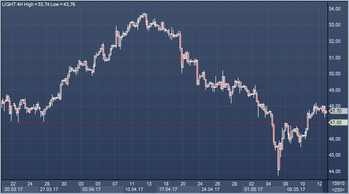 Цены на нефть, как обычно, вяло отреагировали на новости о продолжающемся теперь уже семнадцатую неделю подряд росте числа буровых установок. Обеспокоенность ростом добычи в США уже нашла отражение в недавнем обвале цен, и теперь нефть консолидируется: отчет Минэнерго США по запасам смог ободрить инвесторов, WTI вернулась выше $47, и быки теперь с надеждой ждут решения ОПЕК по поводу продления соглашения об ограничении добычи.