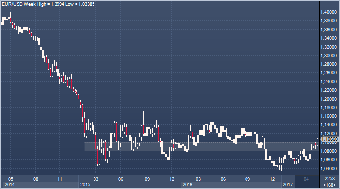 Быки по евро торжествуют: после успешной стабилизации вблизи 1.0850 настрой заметно улучшился, и теперь, когда сопротивление в районе 1.1000 оказалось пробито, будущее евро видится в радужном свете, по крайней мере ближайшее. Фокус сместился к уровням в районе 1.13 и верхней границе диапазона последних двух лет, при этом валютные стратеги CIBC полагают, что от EURUSD можно ожидать и куда более бурного роста - в банке отмечают, что улучшение технической картины является лишь одной из причин для оптимизма. Выборы в Германии еще впереди, однако основные события, тревожившие инвесторов, уже прошли, и рынки теперь уделят больше внимание макроэкономическим показателям, которые в случае с Еврозоной выглядят ободряющими. Отчет по ВВП за первый квартал показал, что восстановление носит широкий характер — в ключевых пяти странах зоны рост продолжился третий квартал подряд. В CIBC отмечают, что риски исходят со стороны вялого роста заработных плат в Еврозоне, однако полагают, что эта проблема будет устранена, учитывая снижение безработицы и рост, темпы которого в ближайшие кварталы, вероятно, будут выше трендового. В CIBC ожидают, что ЕЦБ начнет действовать увереннее и, вероятно, несколько изменит свои прогнозы в июне, в сентябре, возможно, внесет изменения в программу покупки активов, а до конца первого квартала следующего года повысит ставку по депозитам. CIBC сообщает об открытии стратегической длинной позиции в EURUSD по рынку с целью 1.18 и стопом на 1.0720 и лонга в EURGBP с целью на 0.8850.