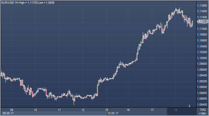 Падение доллара США приостановилось в четверг, американская валюты пытается корректироваться к евро и иене, против которых потеряла больше всего в последние дни из-за политических скандалов в США, которые могут помешать Трампу претворить в жизнь предвыборные обещания. Пара евро/доллар к 17:00 мск в четверг торгуется на уровне $1.1107 по сравнению с $1.1159 на закрытие предыдущей сессии, курс доллара к иене поднялся до 111.09 иены против 110.83 иены накануне. В среду американская валюта потеряла 0.7% относительно евро и 2% к иене. Индекс доллара 17 мая упал до минимального уровня с ноября 2016 года, полностью расставшись с ростом, полученным после президентских выборов в США. Вероятно, игроки решили, что ралли евро опережает само себя.