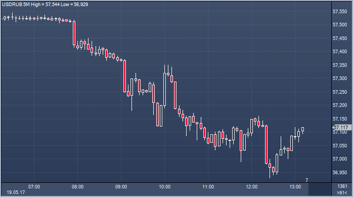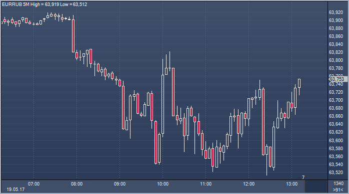 Таким образом, по официальному курсу ЦБ доллар упал к рублю на 30 копеек, а евро упал к рублю на 35 копеек по сравнению с официальным курсом пятницы. Объем торгов на Московской бирже к 13:08 мск пятницы составил 871.3732 млрд рублей или 15 162.6753 млн долларов. Курс рубля растет в пятницу на фоне продолжающей дорожать нефти на оптимизме, что страны ОПЕК+договорятся о продлении соглашения об ограничении нефтедобычи на саммите 25 мая. Цена нефти марки Brent впервые с 21 апреля поднялась выше отметки в $53 за баррель.