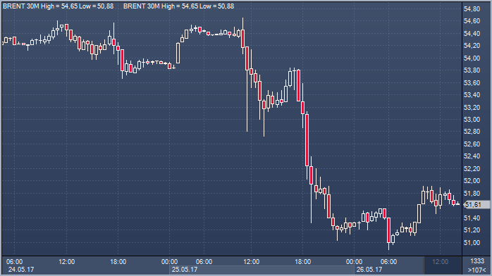 Цены на нефть обрушились почти на 5% в реакции на вчерашнее решение ОПЕК. На электронных торгах снижение первоначально продолжилось, при этом котировки Brent опускались ниже отметки $51 за баррель, марка WTI подешевела до $48.2 за баррель. Однако сейчас цены пытаются стабилизироваться. ОПЕК подтвердила объем сокращения производства, который был согласован полгода назад, и продлила его еще на девять месяцев, до конца первого квартала 2018 года. Все страны, не входящие в картель и участвующие в соглашении – в частности, Россия – подписали новую сделку. Виной того, что цены на нефть попали под сильное давление продаж, несмотря на достигнутые договоренности, стали настолько завышенные ожидания накануне заседания, что простое продление существующего статус-кво на девять месяцев стало разочарованием для игроков рынка. И это именно то, о чем мы предупреждали в начале недели.