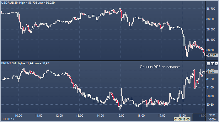 Оживление на рынке нефти после публикации еженедельного отчета Министерства энергетики США взбодрило быков по российской валюте, и, если нефти марки брент пока продолжает встречать отпор вблизи внутридневных максимумов у $51.44, то курс доллара к рублю пробил поддержку вблизи 56.45 и в данный момент держится около 51.24, протестировав биды на подходе к 56.20. Курс евро к рублю, тем временем, также отреагировал падением более чем на 30 копеек и, проверив на прочность уровни вблизи шестьдесят третьей фигуры (рядом проходит линия тренда с 18/04), теперь держится около 63.12, продолжая ощущать интерес к продаже при попытках коррекции. Источник: ProFinance.Ru - Новости рынка Форекс