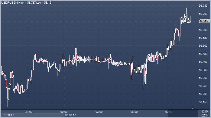Давление на рубль оказывает падение рынка акций РФ в пятницу несмотря на то, что индексы в США накануне обновили рекорды, поскольку хорошие данные с рынка труда усилили уверенность инвесторов в хорошем состоянии экономики США. Российский рынок падает в силу сезонного фактора в связи с закрытием реестров, а также из-за падения цен на нефть. Ухудшение инвестклимата после предъявления иска «Роснефти» к «АФК-Системе» играет роль долгоиграющего негативного фактора. В пятницу - второй день работы Петербургского международного экономического форума. Сегодня ожидается выступление президента РФ Владимира Путина на пленарном заседании.