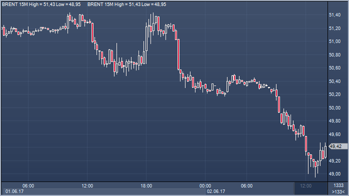 Основным событием вчерашнего дня стало решение Дональда Трампа выйти из Парижского соглашения по климату, вопреки уговорам дочери и госсеркетаря не делать этого. По мнению президента, такое решение позволит создать в США 2.7 млн рабочих мест), поскольку, как он считает, это соглашение несправедливо в отношении США. Правда, он не стал исключать возможность заключения другого соглашения по климату на более выгодных для его страны условиях. Эта новость привела к снижению цен на нефть почти на $2.5 до $49.6/барр. Brent, то есть весь рост цен, произошедший после продления договоренности ОПЕК+ по ограничению добычи нефти, был нивелирован. Позиция президента США расценивается инвесторами как намерение продолжать быстрое развитие американской добычи сланцевой нефти, что не позволит уменьшить запасы коммерческой нефти в США (=глобальный избыток нефти), как того хотят страны ОПЕК+. Тем не менее, на минувшей неделе эти запасы упали на 6.4 млн барр., продолжив спад, что в отсутствие решения по соглашению по климату способствовало бы подъему цен на нефть.