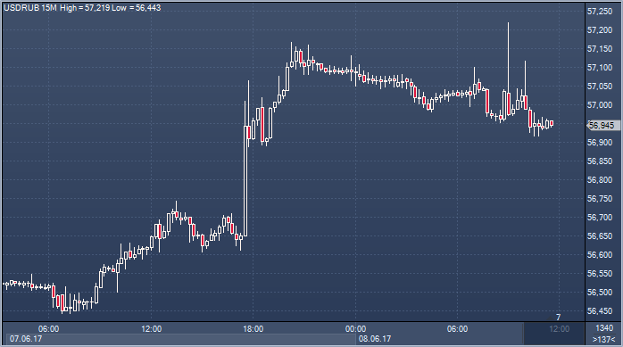 Помимо британских выборов и совещания ЕЦБ (+ пресс-конференция Драги, изюминка, по нашему мнению) ключевым событием дня для рубля станет зарождающийся в Штатах политический сериал под названием «Трампгейт» — попытка сместить непопулярного Трампа. Тот сопротивляется и доказывает свою нужность американскому народу, «вытанцовывая с саблей» в Саудовской Аравии рабочие места для американских работяг — один только контракт на поставку оружия на $100 млрд чего стоит. Сегодня комитет по разведке сената США допросит бывшего директора ФБР Джеймса Коми о «русском следе» в победе Дональда Трампа на выборах. Эти показания могут дать повод для запуска процедуры импичмента Трампа. Импичмент Трампа обрушит доллар, причем последний начнет падать на усиление самой угрозы такового. Рубль тоже упадет, потому что возможны новые санкции против Москвы.