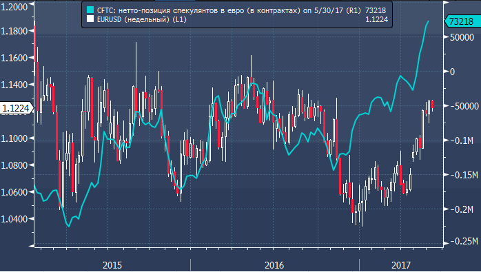 В Danske Bank полагают, что, пока базовая инфляция в Еврозоне не начнет расти, участники рынка будут считать повышение ставок ЕЦБ очень отдаленной перспективой, а для реализации потенциала роста евро (модель Danske предполагает среднесрочную оценку справедливой стоимости евро на уровне 1.26) потребуется изменение такой точки зрения. Этот вопрос, вероятно, станет актуальным в конце второго полугодия, а пока риски смещены в пользу снижения курса евро к доллару. В пользу этого говорят данные позиционирования участников рынка: в евро образовался приличный нетто-лонг, и ослабление бычьего настроя предполагает потенциал для некоторого его сокращения, при этом в случае, если циклический импульс в экономике начнет слабеть, медвежьи настроения в отношении единой европейской валюты вновь начнут расти.