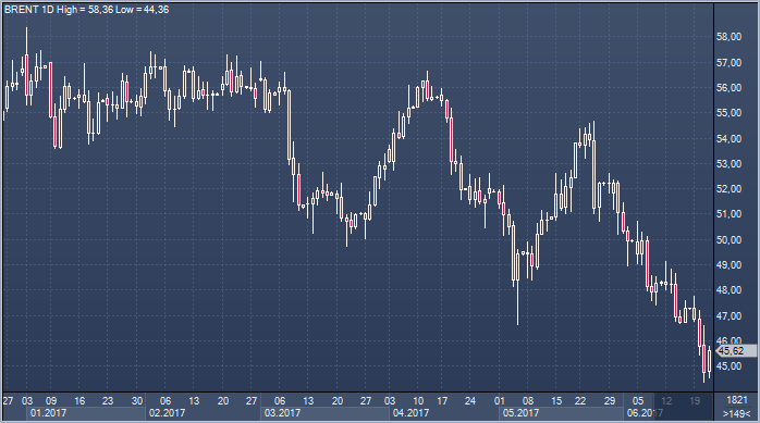 | 22.06.17 17:27 | В Саудовской Аравии новый наследный принц, что это значит для рынка нефти? | 22.06.17 19:04 | Падение цен на нефть вновь заставило инвесторов с интересом посмотреть на золото |
