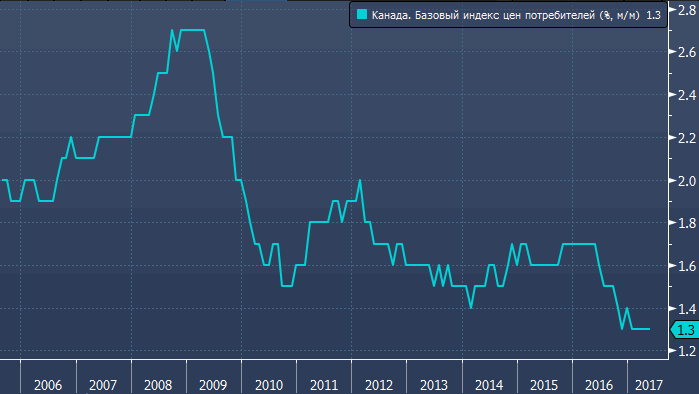 Канада. Базовый индекс цен потребителей в мае +1.3% г/г против прогноза +1.4% г/г