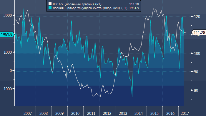 В Danske Bank отмечают, что в свете вектора политики ФРС и Банка Японии в перспективе расширение спреда продолжит быкам оказывать поддержку. Это позволит нивелировать эффект (позитивный для иены) профицита текущего счета и недооцененности японской валюты, но достижения быков по USDJPY, вероятно, останутся скромными: в Danske ожидают, что в течение ближайших трех месяцев пара будет держаться вблизи 112.
