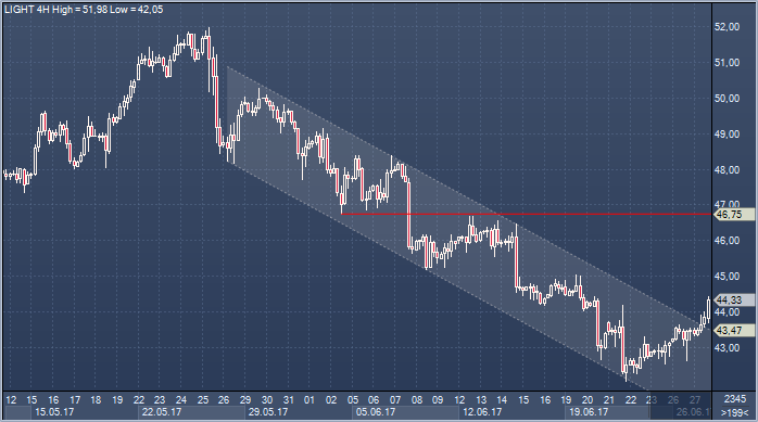 27.06.17 18:17  |  Цены на нефть активно растут благодаря слабости курса доллара США 27.06.17 19:21  |  Нефть дорожает в ожидании данных по запасам