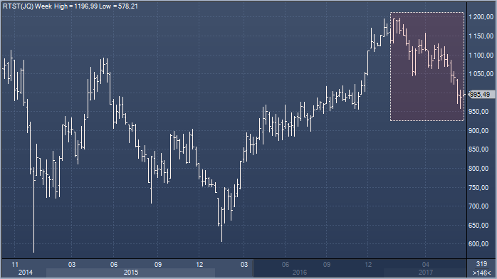 Отметим, что в июне российский фондовый рынок официально вошел в медвежью фазу, снизившись с недавних максимумов на 20%, когда Сенат США проголосовал за введение против РФ новых санкций. Теперь этот законопроект рассматривается в Палате представителей. Цены на нефть, ключевой экспортный товар России, снизились с начала года также почти на 20%.