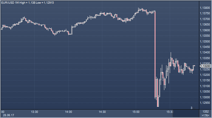 Евро/доллар (EUR/USD) за несколько минут потерял 80 пунктов, упав до нового минимума сессии под $1.1300 ($1.1291) после того, как Bloomberg со ссылкой на неназванный источник в ЕЦБ сообщило, что рынок неправильно истолковал слова Драги о сворачивании количественного смягчения. Причем, что интересно, ранее рынок полностью проигнорировал те же предупреждения со стороны Констансио. Вице-президент Европейского центрального банка (ЕЦБ) Виторио Констансио утром попытался замедлить ралли евро, но ему это не удалось. Он заявил, что "реакции рынка не всегда можно понять", а президент ЕЦБ Марио Драги не сказал ничего нового о денежно-кредитной политике в еврозоне.