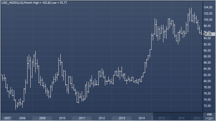В ближайшие месяц-два доллару вряд ли удастся продемонстрировать сильную динамику из-за смягчающейся позиции ФРС и проблем с продвижением через Конгресс инициатив администрации американского президента. В более отдаленной перспективе (к концу года) доллар может возобновить рост, если FOMC будет придерживаться плана ужесточения монетарной политики, а данные по США вновь начнут улучшаться.