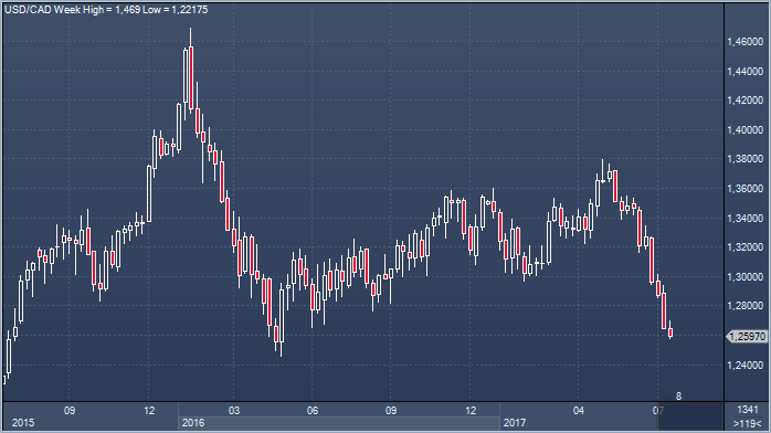 USD/CAD продолжает снижаться, реагируя на более широкое ослабление USD. Пара обновила сегодня минимум с 3 мая 2016 года, опустившись до 1.2580. К недавнему информационному потоку, включающему повышение ставок Банком Канады и рост цен на нефть, сегодня добавились опасения, что экономическая повестка президента Трампа не будет выполнена после того, как сенат не сможет отменить и заменить Obamacare. USD/CAD при обновлении 14-месячного минимума преодолел поддержку на уровне 1.2625/30. Далее падение может быть ограничено из-за перепроданности и большого 104-пунктового движения в течение торгового дня, хотя конечная цель остается на 1.2461, где расположен минимум 3 мая 2016 года. Нефть компенсирует потери понедельника, так как рынки ждут данных по запасам API при прогнозе их снижения, а также совещания технического комитета ОПЕК в Россия в следующий понедельник. Ливия была приглашена на встречу ОПЕК. США опубликовали цели NAFTA, отдавая приоритет дефициту торгового баланса США на предстоящих переговорах. Целями NAFTA для США является сокращение демпинга / субсидирования продукции. Золото также растет сегодня по мере падения доллара США, к тому же Китай рассматривает вопрос о слиянии производителей. 10-летние своп-спреды США-Канада упали до самого низкого уровня в течение года. Одномесячная волатильность CAD выросла до самого высокого уровня почти за неделю. Событий / данных с потенциальными последствиями для валюты сегодня нет.