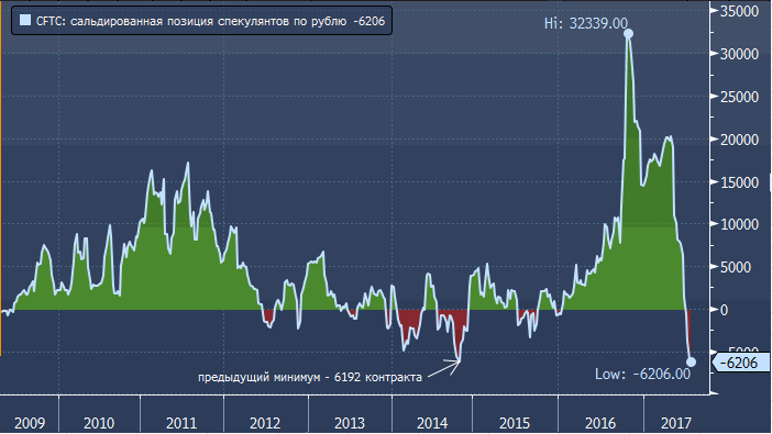 Спекулянты нарастили чистую короткую позицию по рублю до рекордного минимума