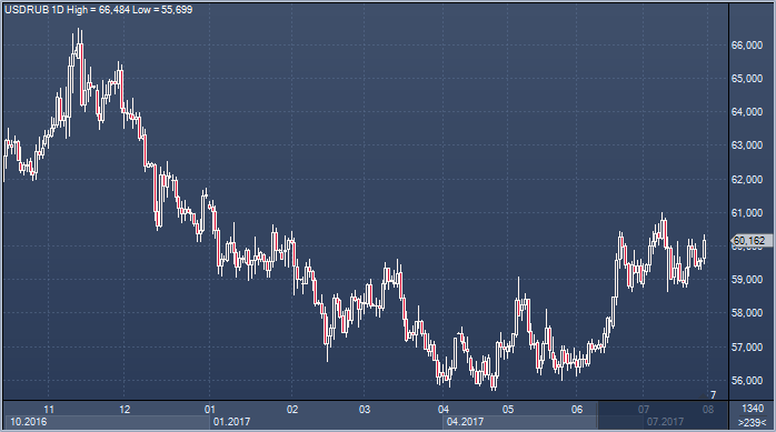 Рубль выглядит дешево, но негативное влияние сезонного фактора в полной мере проявится только в августе, говорится в обзоре экономистов JPMorgan. Цена на нефть выросла на 6% за две недели, тогда как пара доллар/рубль (USD/RUB) прибавила лишь 0.6% за тот же период времени. JPMorgan может повысить рекомендацию по рублю до уровня 'выше рынка' к концу лета при условий улучшения показателей баланса счета текущих операций, заявили эксперты банка.