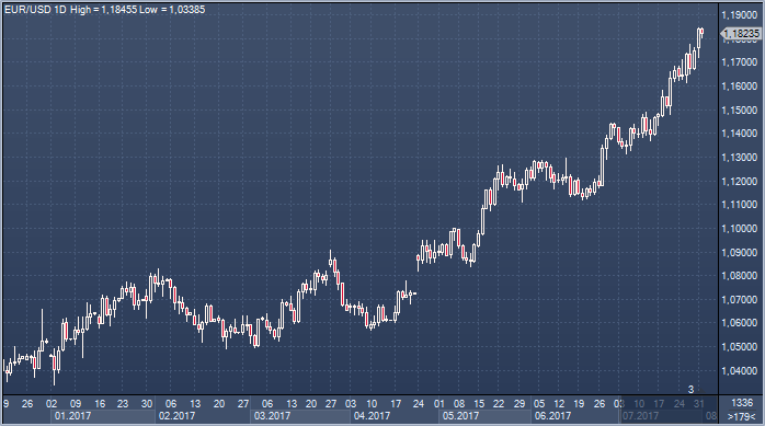 Джейн Фоули, старший аналитик в Rabobank, сообщила, что они пересмотрели свой 12-месячный прогноз по евро до 1.20, и, кроме того, они снизили свои прогнозы по доллару США по всем направлениям. «Победа Макрона на президентских выборах во Франции открыла надежду на реформы в стране, породив оптимизм на усиление интеграции еврозоны. Если Макрон потерпит неудачу в любой из этих задач, EUR, несомненно, заплатит высокую цену. На данный момент, однако, в политическом ландшафте еврозоны, похоже, есть окно относительного спокойствия в сочетании с волнением от радостных вестей с экономического фронта, где пока мало что свидетельствует о том, что данные ухудшатся. Данные за 2 квартал показали, что рост в Испании вернулся к докризисным показателям на уровне 0.9% кв/кв, ирландский центральный банк резко пересмотрел свой прогноз роста в 2017 году с 3.5% до 4.5%, а Греции удалось вернуться на рынок облигаций - хотя стране явно все еще предстоят трудные переговоры.