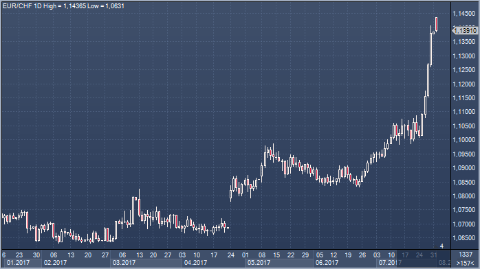 Учитывая расхождение в политике центральных банков и «менее конструктивный поток капитала, связанный с франком (CHF)», швейцарский франк, вероятно, будет поддерживать «постепенную тенденцию к снижению», говорит аналитик Credit Agricolee Мануэль Оливери. Credit Agricole сохраняет «позитивный взгляд по EUR / CHF»; в конце 2017 года банк ожидает увидеть курс на 1.1500 против предыдущего прогноза в 1.1200, а в конце 2018 - на 1.1800 против предыдущего 1.1600.