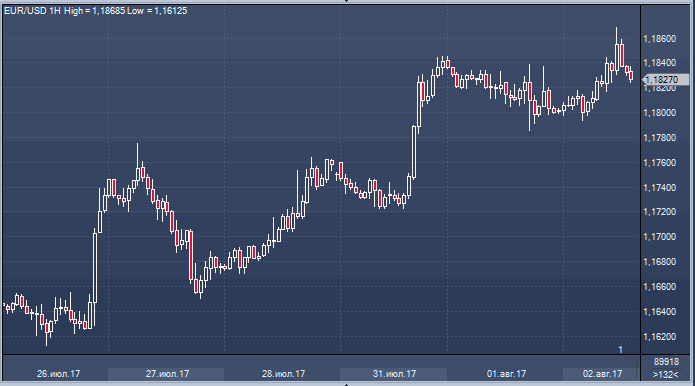 Единая валюта укреплялась в начале европейской торговой сессии в среду, поскольку инвесторы активно сокращали длинные позиции в ожидании пятничного отчета по рынку труда в США. С утра евро/доллар подрос на 0.6% до 1.1868, однако закрепиться на на новых высотах пока не удалось и сейчас за один евро дают 1.1827 долларов. По словам европейских трейдеров, ордера на продажу, расположенные вблизи 1.1870, спровоцировали коррекцию на фоне типичного для летнего периода снижения ликвидности.