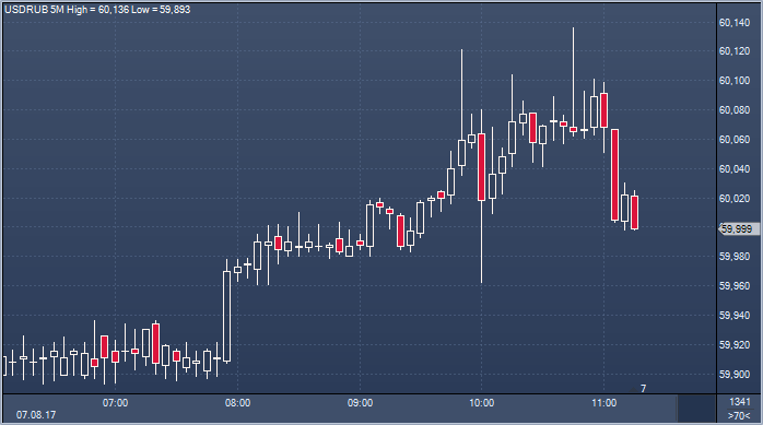 Курс рубля слабо снижается утром на "Московской бирже" (MOEX: MOEX) в понедельник на фоне дешевеющей нефти. Первые сделки по доллару США прошли в диапазоне 60.03-60.09 рубля за доллар, а сейчас курс составляет 60.10 Евро повысился до 70.96 рубля за евро. Нефть дешевеет в ожидании встречи ОПЕК+ в Абу-Даби 7-8 августа. Технический комитет ОПЕК в ходе предстоящего совещания намерен оценить реализацию соглашения о сокращении добычи, заключенного ранее странами-производителями нефти. Рост добычи ОПЕК нивелировал сильную трудовую статистику США и сокращение числа буровых. "Цены на нефть серьезно выросли за счёт хорошей трудовой статистики США, которая, как считают инвесторы, может означать рост спроса на нефть в регионе. Небольшое сокращение числа буровых установок в США также поддержало котировки", – сказали аналитики ANZ.