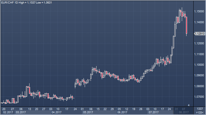 | 09.08.17 15:09 | Технический взгляд на евро против швейцарского франка | 09.08.17 17:13 | Угроза КНДР нанести военный удар по США переполошила рынки: доллар сильно растет |