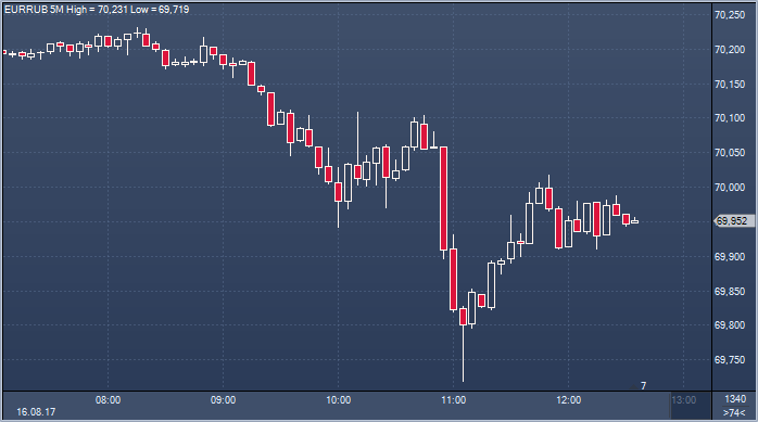 | 16.08.17 11:12 | Курс рубля снова растет, евро опустился ниже 70 | 16.08.17 13:27 | Канадский доллар может протестировать 1.2940 - TD |