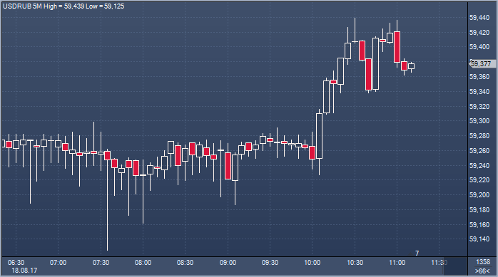 После открытия торгов на "Московской бирже" (MOEX: MOEX) в пятницу первые сделки по доллару США прошли в диапазоне 59.23-59.32 рубля за доллар, а сейчас курс составил 59.41. Евро повысился до 69.71 рубля за евро. В таких условиях не помогают рублю даже растущая нефть и налоговый период. Цены на нефть слабо растут утром в пятницу после сильной распродажи, рынок пытается справиться с медвежьими настроениями, чему помогает ощущение близости выравнивания баланса спроса и предложения. Такое впечатление, что сначала рынок отыграл рост добычи в США, а теперь вдруг решил сосредоточиться на резком падении запасов. Как показали данные Управления энергетической информации (EIA), за неделю к 11 августа сократились на 8.9 миллиона баррелей до 466.49 миллиона баррелей, тогда как аналитики предсказывали снижение на 3.06 миллиона. Среди факторов поддержки – ожидаемый рост спроса на сырьё в Азии, в том числе в Китае и во Вьетнаме, во второй половине этого года. "Мы прогнозируем, что Китай увеличит импорт нефти в годовом сравнении на 700 000 баррелей в сутки во втором полугодии 2017 года", – сказали аналитики FGE. Что касается Вьетнама, то его закупки нефти достигнут рекордной отметки в августе за счёт увеличения объёма переработки, согласно данным системы слежения за судами в терминале Reuters.