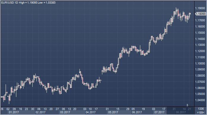 За какие-то 9 месяцев все перевернулось с ног на голову. Приход Трампа в Белый дом ознаменовал собой сильнейшее ралли доллара к иене в конце прошлого года, а потом правы оказались те, кто предупреждал — отрезвление неминуемо. И действительно, с начала 2017 года доллар потерял более 8%. Надежды, положенные в основу долларового ралли, сменились полнейшим разочарованием от неспособности президента реализовать экономическую часть своих обещаний. Добавьте к этому прямую критику доллара непосредственно Трампом, чего ранее лидеры Америки себе не позволяли. В итоге аналитики пытаются подвести экономическое обоснование девальвации доллара в лице улучшения экономики еврозоны и сворачивания QE, что действительно имеет место быть, так как евро укрепился к доллару сильнее других. Но факт остается фактом: пока доллар не увидит налоговой реформы, он останется в рамках нисходящей тенденции, где спекулянты пользуются любой возможностью, чтобы перезайти в шорты по гринбеку.