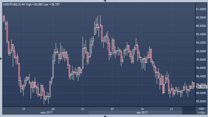 По итогам торгов в четверг 24 августа курс доллара к рублю вырос на 9 копеек и составил 59.15. Курс евро к рублю вырос на 7 копеек до 69.80 (прим. ProFinance.ru: по состоянию на 23:50 мск).