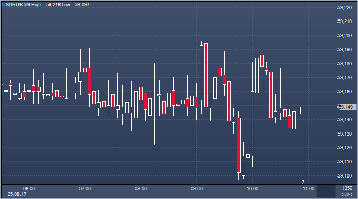 Курc рубля слабо растет после открытия торгов на Московской бирже в пятницу вслед за повышением цен не нефть, в основном отслеживая движение пары евро/доллар. Американский доллар повысился в пятницу на фоне перепозиционирования, то есть сокращения лишних маржинальных позиций спекулянтами, перед выступлениями представителей центральных банков в Джексон-Хоул. Несмотря на то, что ожидается, что глава Федрезерва США Джанет Йеллен и руководитель Европейского центрального банка Марио Драги будут придерживаться заранее подготовленной речи в ходе пятничных выступлений и не станут давать новых прогнозов, свобода воли трейдерского толкования как сказанного, так и недосказанного, создает предпосылки для того, что сам факт встречи может быть использован спекулянтами как сигнал к большому движению. Инвесторы больше всего сейчас ждут от ФРС конкретики о дальнейшем повышении ставок ФРС и начале сокращения баланса, а от ЕЦБ — конкретики о прекращении количественного смягчения. Выступление Йеллен назначено на 17:00 мск, а Драги - на 22:00 мск.
