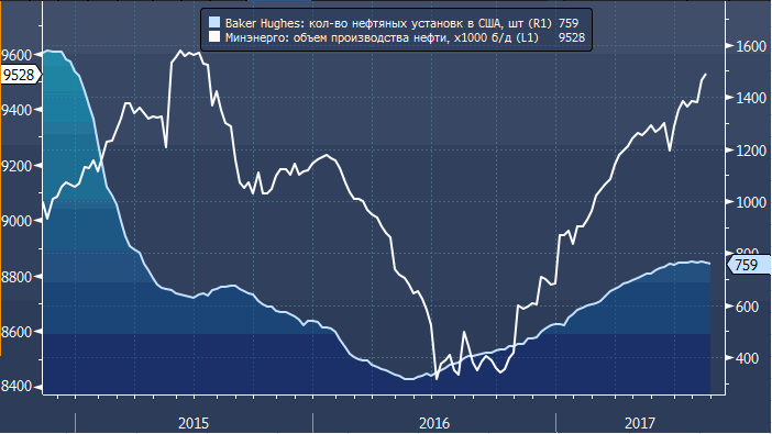 количество нефтяных установок уменьшилось на 4 до 759 штук