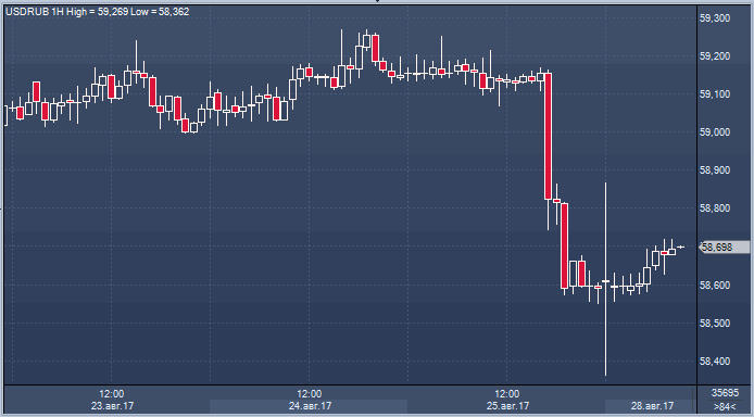 Последняя неделя августа традиционно одна из самых спокойных на валютном рынке, поэтому, учитывая полупустой экономический календарь, в ближайшие дни можно рассчитывать скорее на консолидацию в диапазонах с признаками коррекции, нежели на новые прорывы. Кроме того, на горизонте уже маячит очередной фактор риска и традиционный источник волатильности - отчет по рынку труда в США. Это значит, что трейдеры, скорее всего, предпочтут спокойно осмыслить ситуацию - в том числе и слова Йеллен, которая на самом деле не сказала ничего плохого для доллара. Кроме того, в среду состоится выступление Трампа по вопросу налоговой реформы. Если президенту удастся снова зажечь рынки идеей льгот и отвлечь внимание от негативных факторов, включая свою злосчастную реакцию на беспорядки в Шарлотсвилле, доллар может немного подрасти.