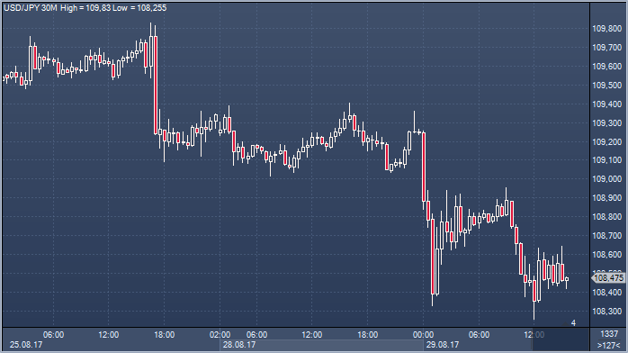 С точки зрения FX-стратегов в UOB Group, прогноз по паре доллар/иена должен измениться на медвежий в случае закрытия дня ниже 108.55. «USD торговался в «тихой» манере вчера, но упал после того, как закрылся Нью-Йорк на фоне новостей об очередном пуске ракеты Северной Кореей. Быстрое и резкое падение до минимума 108.32 было непродолжительным, так как доллар США организовал быстрый отскок. Несмотря на восстановление, пока нет признаков стабилизации, и повторный тест уровня 108.30/35 не удивит (следующая поддержка находится на минимуме около 108.10). Сопротивление составляет 109.10, за ним следует 109.40. Последний уровень сейчас действует как очень сильное сопротивление и вряд ли будет легко пройден как сегодня, так и в ближайшие дни.