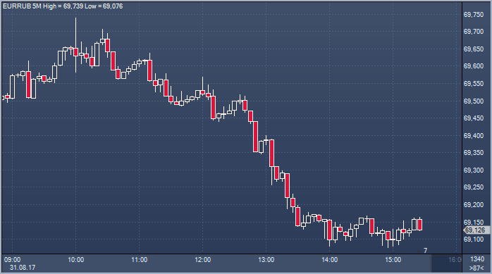 Таким образом, по официальному курсу ЦБ доллар упал к рублю на 19 копеек, а евро упал к рублю на 58 копеек по сравнению с официальным курсом четверга. Объем торгов на Московской бирже к 15:25 мск четверга составил 1 187.1616 млрд рублей или 20 213.6811 млн долларов. Курс рубля сегодня растет благодаря позитивным тенденциям на фондовом рынке. Индекс РТС обновляет максимумы с мая благодаря спасению банка «Открытие» Банком России, что предотвратило системный банковский кризис в экономике