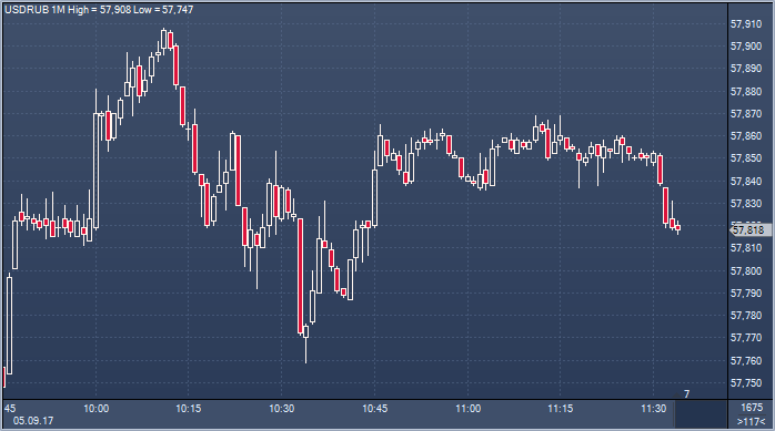 Курс рубля стабилен утром во вторник, демонстрируя небольшой рост к евро и понижение к доллару на фоне тяжести, наблюдаемой в евро/долларе в преддверии судьбаносного четверга, когда ЕЦБ может обрушить на евро всю свою ярость и гнев, как это было в пятницу, с той лишь разницей, что вес источников в два, а то и в три раза меньше, чем вес слова «железного Марио». Помимо риторики, относящейся к евро, Драги может дать инвесторам понимание направления денежно-кредитной политики в еврозоне. И ужесточение тона здесь будет неблагоприятно воспринято рублем. Сегодня американские трейдеры выйдут на биржу и проявят свою реакцию на события, которые произошли в последние дни. В центре внимания несомненно - развитие ситуации вокруг Северной Кореи после очередных ядерных испытаний и риски дальнейшей эскалации противостояния КНДР с США и их союзниками. К 11:20 мск биржевые котировки пары доллар/рубль расчетами “завтра” были вблизи 57.86, что недалеко от уровня закрытия торгов понедельника. Пара евро/рубль расчетами “завтра” к этому времени находилась у отметки 68.74 рубля, и здесь рубль близок к предыдущему биржевому закрытию.