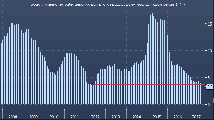 - Рост потребительской инфляции с начала года составил 1.8%, что оказалось существенно ниже прогноза (2.2%)