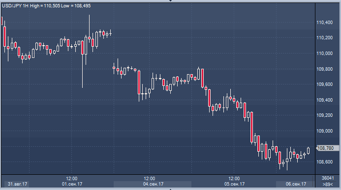 Ситуация вокруг Северной Кореи поддерживает на рынках легкий анти-рисковый настрой, который, в свою очередь, подпитывает спрос на золото и американские гос. облигации, а также усиливает медвежье давление на фондовые индексы. Золото вчера обновило годовые максимумы на уровне 1344.44 и сегодня с утра консолидируется в новом диапазоне с нижней границей в районе 1330. Акции падают по всей Азии от Токио до Сиднея. Так, австралийский S&P/ASX 200 потерял 0.4% за счет падения в финансовой сфере, Topix в Японии снизился на 0.3%, а Hang Seng - на 1%. Американский DJIA вчера подешевел на 234 пункта, пережив самое масштабное внутридневное падение за последний месяц. Доходность по 10-летним гос. облигациям США упала на 2.072%.