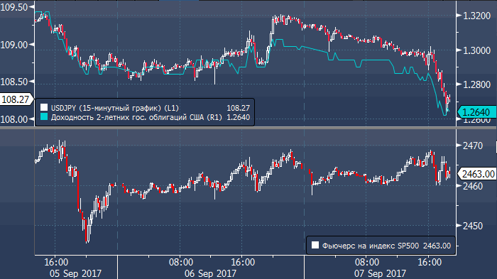 Неприятное впечатление на инвесторов оказала статься в Wall Street Journal о том, что Гари Кон, занимающий в настоящее время пост главного экономического советника президента США Дональда Трампа, не станет следующим председателем ФРС. Кроме того, у участников рынка усилился пессимизм относительно урагана Ирма, надвигающегося на Флориду - масштабы разрушений на островах Карибского бассейна выглядят пугающими, рисуя тревожную картину для бумаг страховых компаний. Экономическая статистика из США сегодня также носила не слишком радостный характер, в частности число первичных заявок на пособие по безработице показало максимальный рост за с 2005 года (впрочем, стоит признать, что из 62 новых заявок, 51 000 пришлась на Техас, пострадавший от урагана Харви).