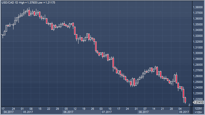 USDCAD. Закрыта позиция от 5 сентября: покупка от 1.2391 закрыта на 1.2128 (Stop-loss). Убыток 263 пункта