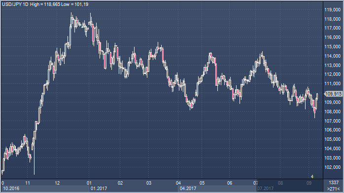 Премия за риск, отраженная в котировках 10-летних казначейских облигаций США, является самой большой с момента вступления в должность Трампа, и кажется, что коррекция здесь уже близка, особенно если учесть скорое окончание сезона ураганов, временное решение проблемы с потолком госдолга и ослабление обеспокоенности вокруг Северной Кореи. Все это приведет к рост USD/JPY в четвертом квартале. USD/JPY очень чувствительна к шансам на повышение ставки ФРС, поскольку BOJ остается в стороне. Пересмотр вероятности на одно дополнительное повышение ставки в США на 2018 год должен сформировать «пол» по USD/JPY около 110. Хеджфонды, возможно, тоже слишком пессимистично относятся к рискованным активам, и может быть противоположный сигнал на этом фронте.