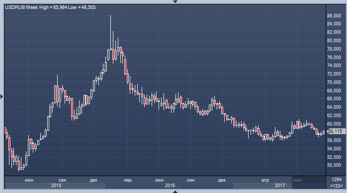 Danske Bank считает, что через год рубль укрепится до 53.50 за доллар